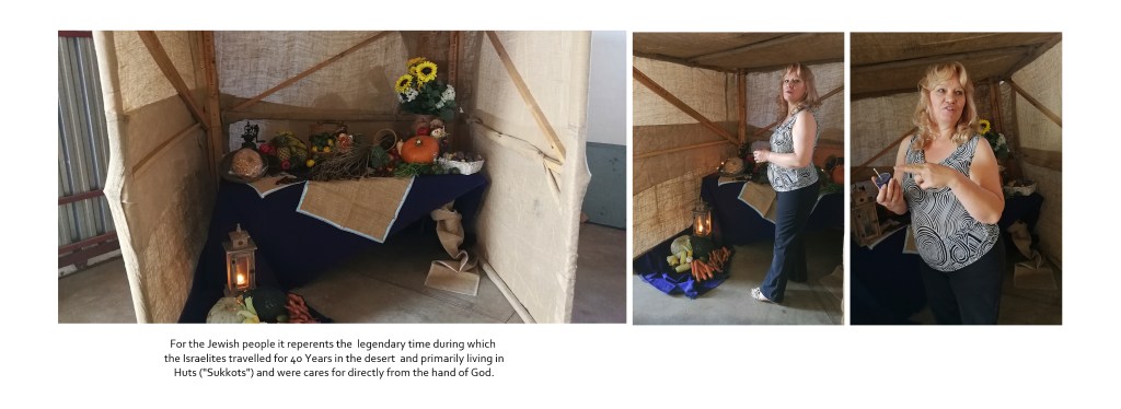 Spread 5 Introduces the Sukkot itself. It is an introductory photograph. The two photographs on the right show how it was decorated. In both cases, my wife’s gestures made these photographs special. They are not mere portraits or poses but tells a story.